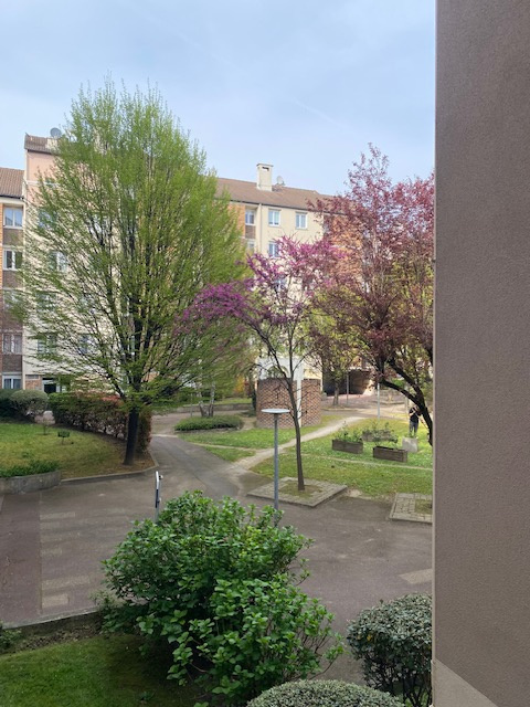 Vue traversant : Sur parc et immeuble en face