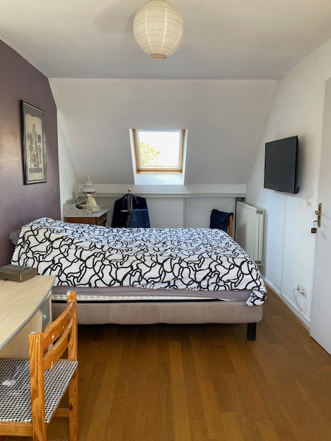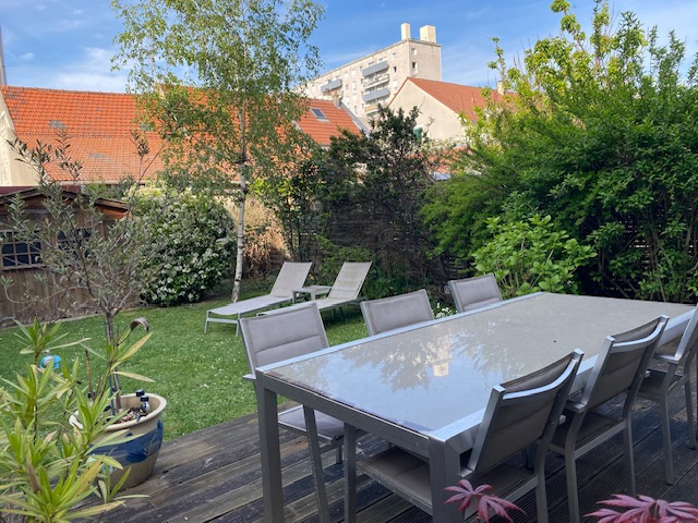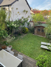 Jolie maison de 5 pièces dont 4 chambres. Au RDC une entrée avec penderie distribue à droite le séjour (salon/salle à manger) de 24m², la cuisine équipée de 7m²50 avec accès au garage de 18.50m², un WC, l'escalier d'accès au 1er étage. Le séjour se prolonge à l'extérieur avec une terrasse et le jardiin à l'arrière et un jardinet à l'avant. Une double porte style verrière sépare la cuisine du séjour. Le 1er étage distribue 3 chambres, une salle d'eau et un dressing, au-dessus les combles sont aménagés en une grande suite parentale ouverte sur la salle de bains, pièce très lumineuse pour admirer les étoiles et les feux d'artifices grace à ses grands vélux. Les fenêtres sont en double vitrage avec volets en bois, les pièces à vivre sont en parquet, a l'avant une cour permet de garer une seconde voiture devant le garage. Les charges de gaz et d'électricité sont de 129€/mois très faibles grâce à la chaudière à condensation neuve Frisket, et la bonne isolation, la maison est traversante exposée S/N. L'ensemble est bien entretenu, calme et sans vis à vis, un petit coin de campagne en ville à deux pas des tranports en communs (Bus/T1/RER C/Métro les Courtilles) et de toutes les commodités (écoles, commerces, parcs, centre nautique) Contactez nous pour la visite.